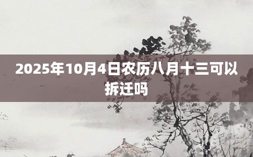 2025年10月4日农历八月十三可以拆迁吗拆迁在黄历中指的是适宜拆除或改建破旧房屋的日子,那2025年10月4日拆迁好不好?2025年10月4日是拆迁吉日良辰吗?卦无忧网为您提供拆迁吉日吉时,可收藏查看...2025-05-19