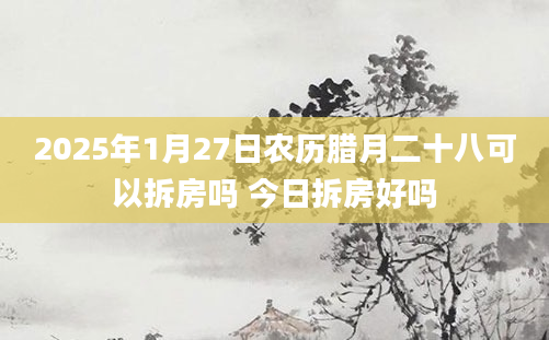 2025年1月27日农历腊月二十八可以拆房吗 今日拆房好吗破屋和拆卸黄历是一种民间传统,常被认为具有祈福、驱邪等作用。破屋指的是在特定时间拆除房屋的行为,而拆卸黄历则是根据农历日期选择合适的时间进行拆卸工作。那2025...2024-11-28最新文章