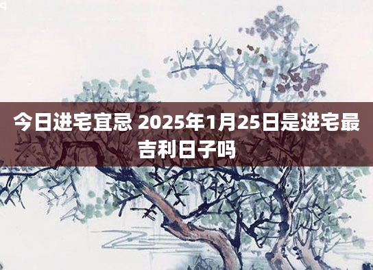 今日进宅宜忌 2025年1月25日是进宅最吉利日子吗当日不适合进宅根据该日的黄历信息分析可得,2025年1月25日为黑道日,就民间说法来看,黑道日不利行事,若这一日进宅,可能会有不好的影响,但黑道日并不是完全忌讳...2024-11-28