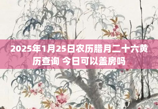 2025年1月25日农历腊月二十六黄历查询 今日可以盖房吗选择一个良辰吉日来盖房是一件重要的事情,2025年1月25日盖房好不好?盖房选什么日子好?卦无忧帮您查询适合盖房的日子。当日不适合盖房根据该日的黄历信息分析可得...2024-11-28