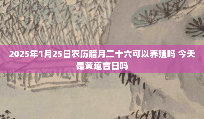2025年1月25日农历腊月二十六可以养殖吗 今天是黄道吉日吗养殖是指培育和繁殖动植物。养殖包括家畜养殖、家禽养殖、水产养殖和特种养殖等种类。2025年1月25日养殖好不好?养殖选什么日子好?卦无忧帮您查询适合养殖的日子。...2024-11-28