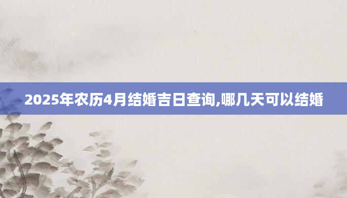 2025年农历4月结婚吉日查询,哪几天可以结婚想知道农历4月份哪天适合结婚需要查询黄历,从宜忌标注可知,2025年农历4月结婚黄道吉日有9天,分别是:四月初四、四月初十、四月十三、四月十四、四月十九、四月二...2024-11-24