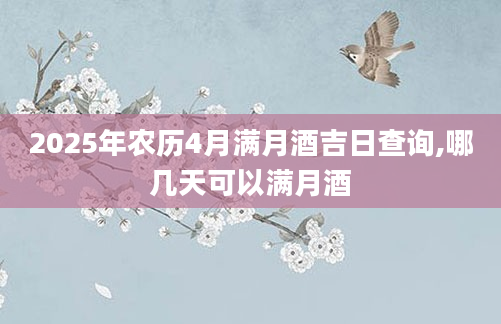 2025年农历4月满月酒吉日查询,哪几天可以满月酒想知道农历4月份哪天适合满月酒需要查询黄历,从宜忌标注可知,2025年农历4月满月酒黄道吉日有4天,分别是:四月初四、四月初十、四月十七、四月二十,大家可以从中...2024-11-24