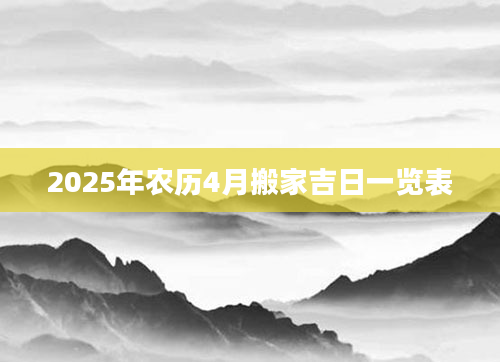 2025年农历4月搬家吉日一览表想知道农历4月份哪天适合搬家需要查询黄历,从宜忌标注可知,2025年农历4月搬家黄道吉日有7天,分别是:四月初三、四月十四、四月十六、四月十九、四月廿二、四月廿...2024-11-24