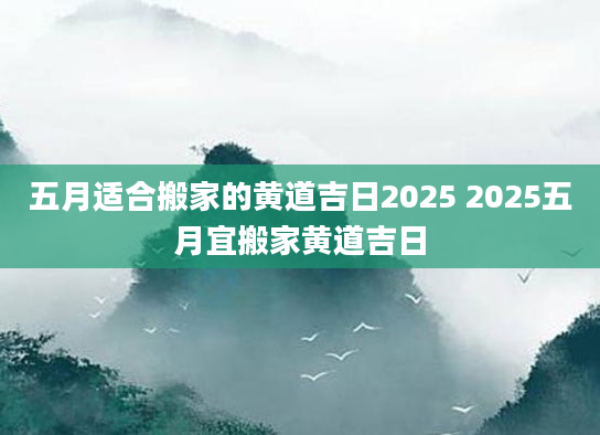 五月适合搬家的黄道吉日2025 2025五月宜搬家黄道吉日很多人在搬家前会选择一个搬家吉日,以期未来的生活顺利、平安,那么你知道2025五月宜搬家黄道吉日有哪些?在选择搬家吉日的时候是有不少讲究和忌讳的,像与主人相冲的...2024-11-24