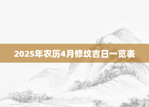 2025年农历4月修坟吉日一览表想知道农历4月份哪天适合修坟需要查询黄历,从宜忌标注可知,2025年农历4月修坟黄道吉日有10天,分别是:四月初四、四月初六、四月初七、四月十一、四月十四、四月...2024-11-24