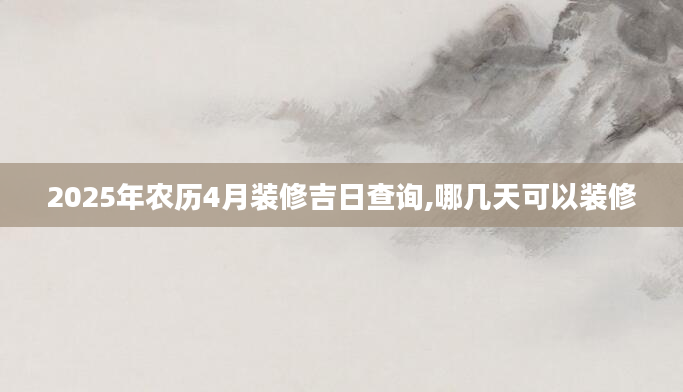 2025年农历4月装修吉日查询,哪几天可以装修想知道农历4月份哪天适合装修需要查询黄历,从宜忌标注可知,2025年农历4月装修黄道吉日有5天,分别是:四月初一、四月十一、四月十四、四月二十、四月廿二,大家可...2024-11-24