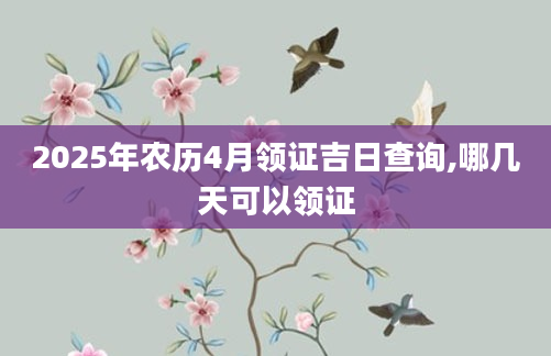 2025年农历4月领证吉日查询,哪几天可以领证想知道农历4月份哪天适合领证需要查询黄历,从宜忌标注可知,2025年农历4月领证黄道吉日有9天,分别是:四月初三、四月初四、四月十三、四月十四、四月十九、四月二...2024-11-24