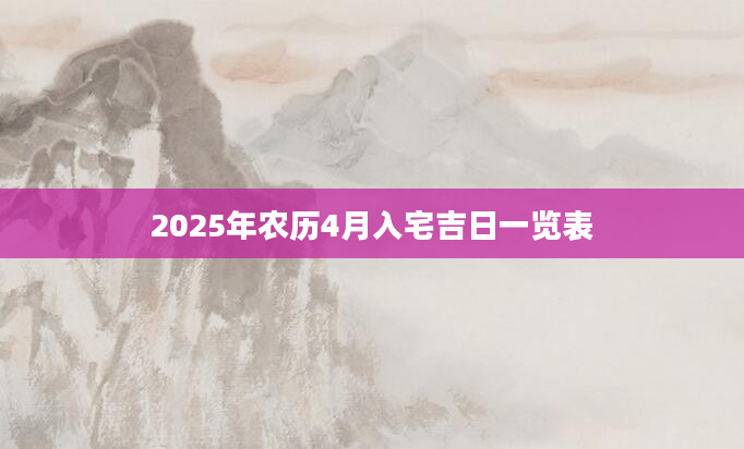 2025年农历4月入宅吉日一览表想知道农历4月份哪天适合入宅需要查询黄历,从宜忌标注可知,2025年农历4月入宅黄道吉日有7天,分别是:四月初三、四月初十、四月十四、四月十六、四月廿二、四月廿...2024-11-24