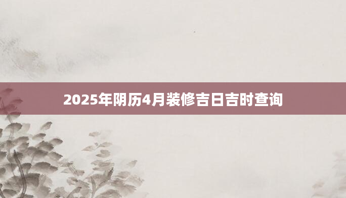 2025年阴历4月装修吉日吉时查询想知道阴历4月份哪天适合装修需要查询黄历,从宜忌标注可知,2025年阴历4月装修黄道吉日有6天,分别是:四月初一、四月初十、四月十一、四月十四、四月二十、四月廿...2024-11-24