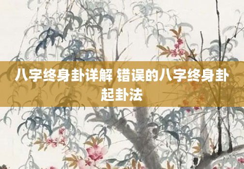 八字终身卦详解 错误的八字终身卦起卦法1、八字终身卦详解八字终身卦的详解八字终身卦是传统文化中的一种预测命运的方法,它以出生年、月、日、时为基础,通过排列组合天干地支来揭示一个人一生的命运轨迹。这个...2024-11-24