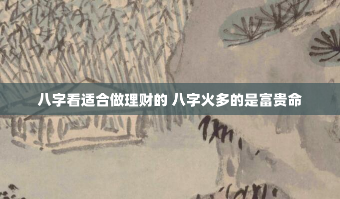 八字看适合做理财的 八字火多的是富贵命1、八字看适合做理财的八字学,又称命理,是古代人用来推测一个人一生命运的一种方法。通过对八个字的分析,可以了解到一个人的性格特点、职业发展和财富状况等。在文章中...2024-11-24