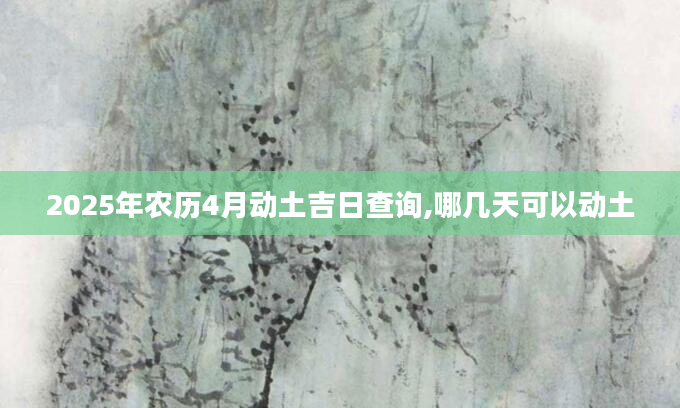 2025年农历4月动土吉日查询,哪几天可以动土想知道农历4月份哪天适合动土需要查询黄历,从宜忌标注可知,2025年农历4月动土黄道吉日有10天,分别是:四月初十、四月十一、四月十四、四月十六、四月十九、四月...2024-11-24