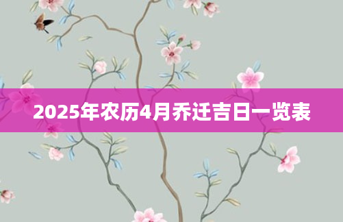 2025年农历4月乔迁吉日一览表想知道农历4月份哪天适合乔迁需要查询黄历,从宜忌标注可知,2025年农历4月乔迁黄道吉日有7天,分别是:四月初三、四月十四、四月十六、四月十九、四月廿二、四月廿...2024-11-24