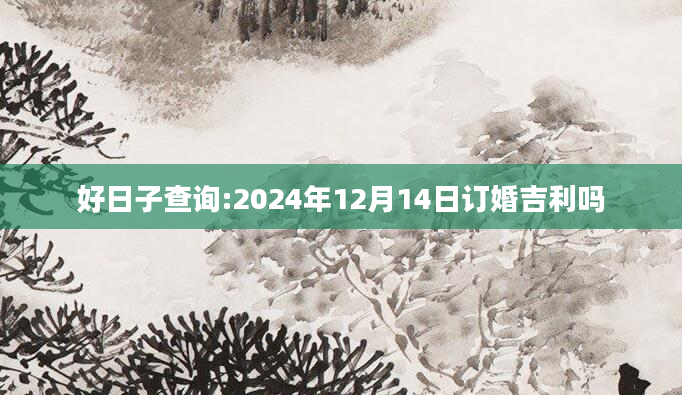 好日子查询:2024年12月14日订婚吉利吗当两个相爱的人决定结婚之后,最重要的就是订婚了。选择美好的日子去做重要的事情是有利的,这样可以使我们的婚姻生活更加幸福,因此在订婚前选择吉日是非常必要的,我们需...2024-11-18