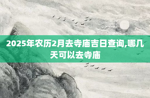 2025年农历2月去寺庙吉日查询,哪几天可以去寺庙想知道农历2月份哪天适合去寺庙需要查询黄历,从宜忌标注可知,2025年农历2月去寺庙黄道吉日有12天,分别是:二月初一、二月初四、二月初六、二月初七、二月十四、...2024-11-02
