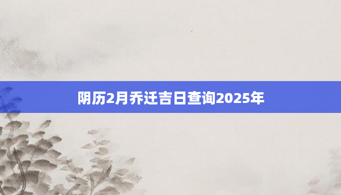 阴历2月乔迁吉日查询2025年想知道阴历2月份哪天适合乔迁需要查询黄历,从宜忌标注可知,2025年阴历2月乔迁黄道吉日有10天,分别是:二月初六、二月初七、二月初八、二月初十、二月十六、二月...2024-11-02