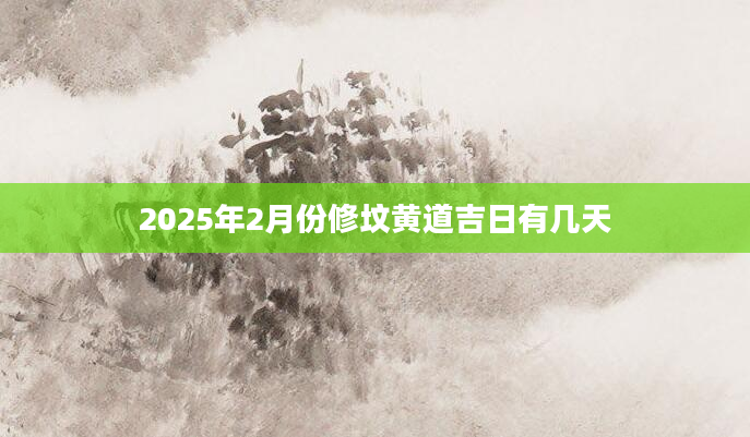 2025年2月份修坟黄道吉日有几天想知道2月份哪天适合修坟需要查询黄历,从宜忌标注可知,2025年2月修坟黄道吉日有12天,分别是:2月3日、2月7日、2月9日、2月10日、2月13日、2月15...2024-11-02