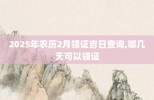 2025年农历2月领证吉日查询,哪几天可以领证想知道农历2月份哪天适合领证需要查询黄历,从宜忌标注可知,2025年农历2月领证黄道吉日有13天,分别是:二月初三、二月初四、二月初七、二月初九、二月十五、二月...2024-11-02