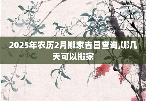 2025年农历2月搬家吉日查询,哪几天可以搬家想知道农历2月份哪天适合搬家需要查询黄历,从宜忌标注可知,2025年农历2月搬家黄道吉日有11天,分别是:二月初四、二月初六、二月初七、二月初八、二月初十、二月...2024-11-02