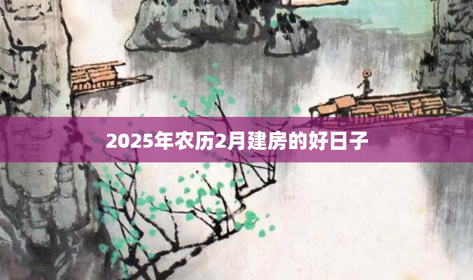 2025年2月哪天适合建房想知道2月份哪天适合建房需要查询黄历,从宜忌标注可知,2025年2月建房黄道吉日有8天,分别是:2月2日、2月7日、2月9日、2月12日、2月15日、2月19日...2024-11-02