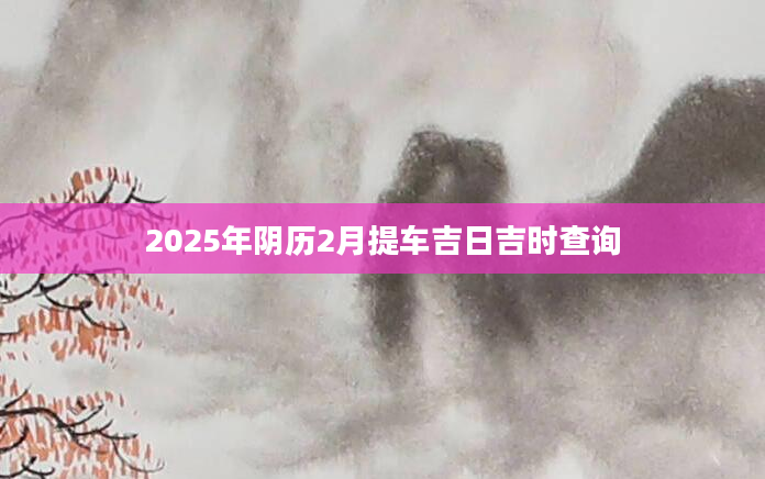 2025年阴历2月提车吉日吉时查询想知道阴历2月份哪天适合提车需要查询黄历,从宜忌标注可知,2025年阴历2月提车黄道吉日有10天,分别是:二月初四、二月初六、二月初七、二月初八、二月十二、二月...2024-11-02