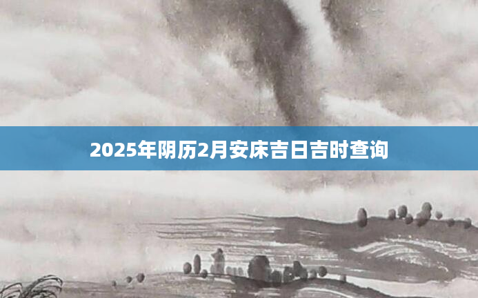 2025年阴历2月安床吉日吉时查询想知道阴历2月份哪天适合安床需要查询黄历,从宜忌标注可知,2025年阴历2月安床黄道吉日有12天,分别是:二月初七、二月初八、二月初九、二月十一、二月十二、二月...2024-11-02