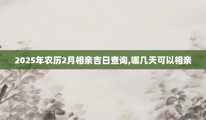 2025年农历2月相亲吉日查询,哪几天可以相亲想知道农历2月份哪天适合相亲需要查询黄历,从宜忌标注可知,2025年农历2月相亲黄道吉日有6天,分别是:二月初六、二月初七、二月初八、二月初十、二月十一、二月十...2024-11-02