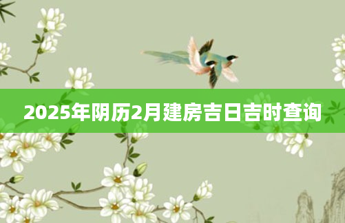 2025年阴历2月建房吉日吉时查询想知道阴历2月份哪天适合建房需要查询黄历,从宜忌标注可知,2025年阴历2月建房黄道吉日有9天,分别是:二月初四、二月初六、二月初七、二月初八、二月十七、二月十...2024-11-02