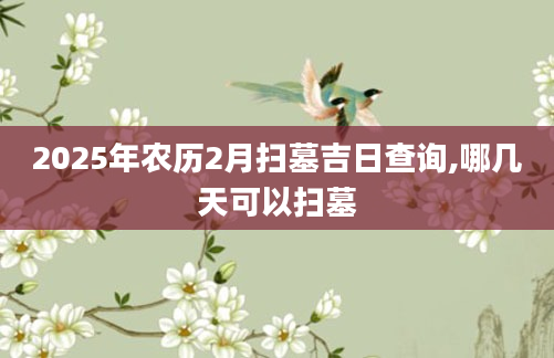 2025年农历2月扫墓吉日查询,哪几天可以扫墓想知道农历2月份哪天适合扫墓需要查询黄历,从宜忌标注可知,2025年农历2月扫墓黄道吉日有20天,分别是:二月初一、二月初三、二月初五、二月初六、二月初七、二月...2024-11-02