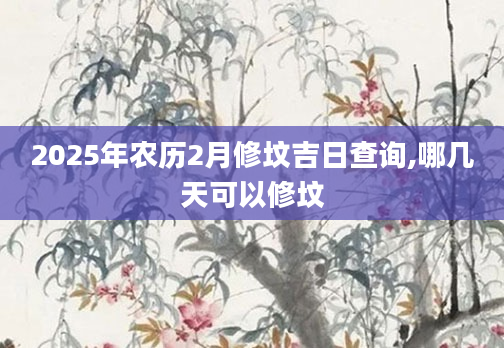 2025年农历2月修坟吉日查询,哪几天可以修坟想知道农历2月份哪天适合修坟需要查询黄历,从宜忌标注可知,2025年农历2月修坟黄道吉日有11天,分别是:二月初四、二月初六、二月初七、二月十一、二月十二、二月...2024-11-02