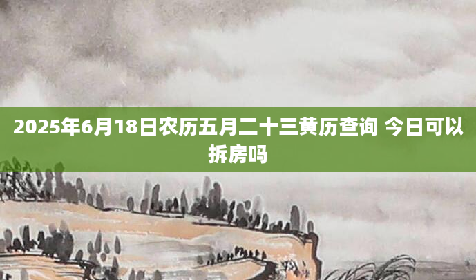2025年6月18日农历五月二十三黄历查询 今日可以拆房吗破屋和拆卸黄历是一种民间传统,常被认为具有祈福、驱邪等作用。破屋指的是在特定时间拆除房屋的行为,而拆卸黄历则是根据农历日期选择合适的时间进行拆卸工作。那2025...2025-04-25