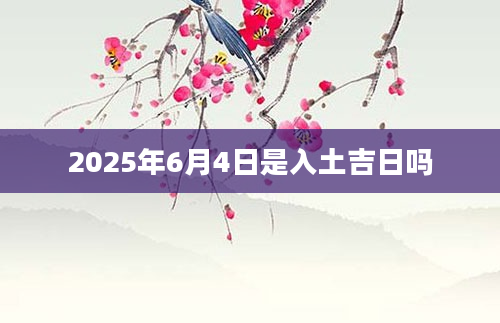 2025年6月4日是入土吉日吗我国传统认为,人去世以后要“入土为安”,那么2025年6月4日入土日子好吗?卦无忧为您提供入土黄道吉日,欢迎查看收藏哦!当日不适合入土根据该日的黄历信息分析可得...2025-04-21