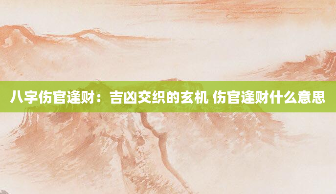 八字伤官逢财:吉凶交织的玄机 伤官逢财什么意思伤官坐财,这组合在命盘里总让人心头一紧。甲木日主见丁火为伤官,偏巧碰上己土正财——你说这是要破财还是发家?命书里写得含糊,实战中可没那么简单。有人一辈子被这配置...2025-04-21