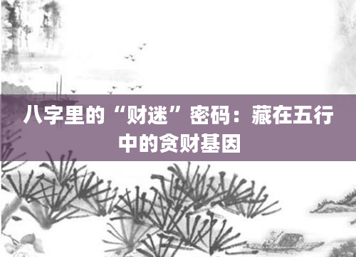 八字里的“财迷”密码:藏在五行中的贪财基因直接看天干地支——财星坐月令还透干的主儿,十个有八个对钱敏感。甲木日主碰上戊土偏财挂年柱,乙木见己土正财贴近日元,这类人走路上都能闻着铜板味儿。地支藏干更狠,卯...2025-04-21