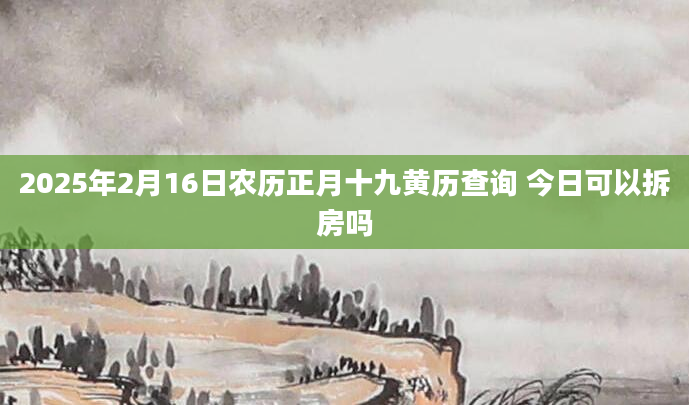 2025年2月16日农历正月十九黄历查询 今日可以拆房吗破屋和拆卸黄历是一种民间传统,常被认为具有祈福、驱邪等作用。破屋指的是在特定时间拆除房屋的行为,而拆卸黄历则是根据农历日期选择合适的时间进行拆卸工作。那2025...2025-01-09最新文章