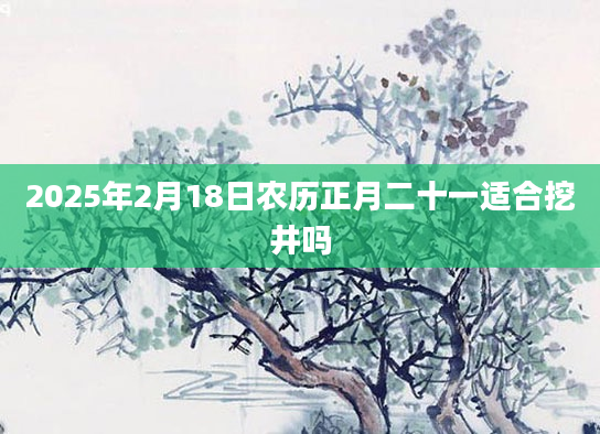 2025年2月18日农历正月二十一适合挖井吗当日不适合挖井根据该日的黄历信息分析可得,2025年2月18日为黑道日,就民间说法来看,黑道日不利行事,若这一日挖井,可能会有不好的影响,但黑道日并不是完全忌讳...2025-01-09