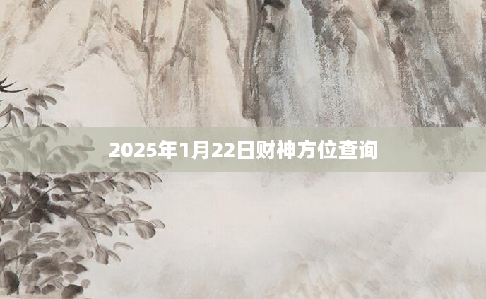 2025年1月22日财神方位查询财神方位在每个人心里都是有一定的影响的,因为它对我们的财运是有很大影响的。所以我们在求财的时候就一定要找准自己的财神方位在哪,只有摆放在一个正确的位置才能够让我...2025-01-09