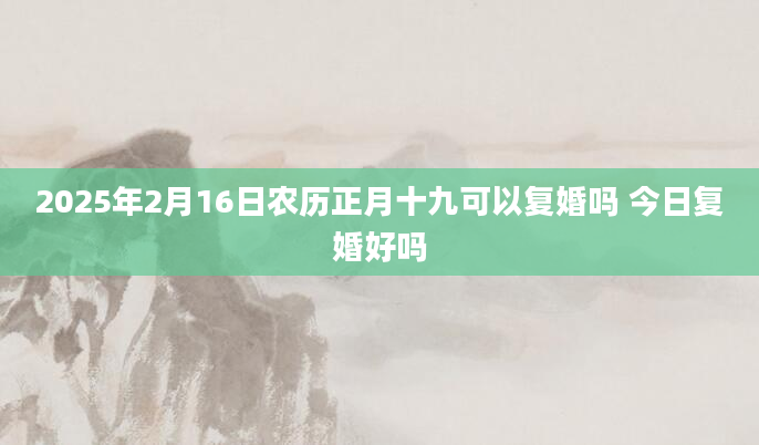 2025年2月16日农历正月十九可以复婚吗 今日复婚好吗每一段婚姻生活都是难能可贵的,有些夫妻可能因为这样那样的原因而选择分手,但后续又察觉到对方的好,双方又选择和好如初,所谓一日夫妻百日恩,床头吵架床尾和。那么20...2025-01-09