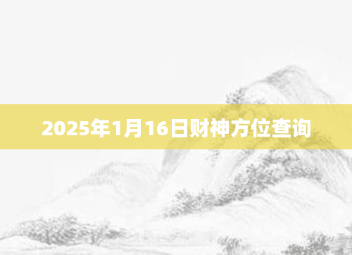 2025年1月16日财神方位查询每个人都会想要发财,但是很多人都是不太了解如何才能够实现这个愿望的。因为只有自己掌握了正确的方法和技巧,在赚钱的时候就会变得非常顺利,而财神爷作为我们财富积累的...2025-01-09