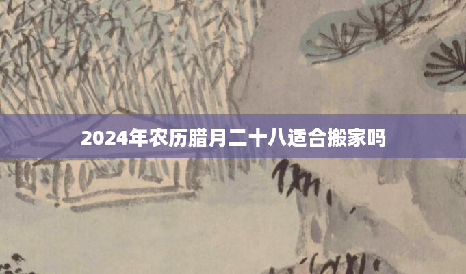 2024年农历腊月二十八适合搬家吗导语:搬家选择吉日是一件非常重要的事情,在我们入住新房之前要先进行乔迁、装修等等。每个月份的吉日是不一样的,并不是都适合搬家的,只有选好日子才能让我们今后的生活...2025-01-09