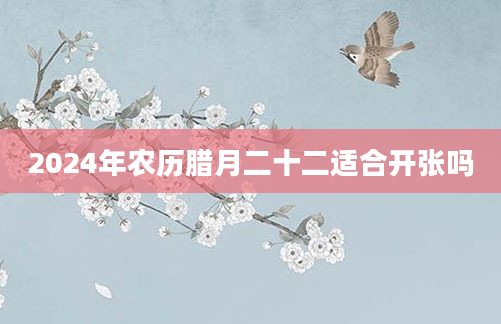 2024年农历腊月二十二适合开张吗开业是一件大事,我们应该重视吉日的选择。选择好日子也是为了能有好的运势加持和帮助自己实现更好的发展,因此,我们在准备开店的时候就一定要认真对待开业的仪式,为的就...2025-01-09