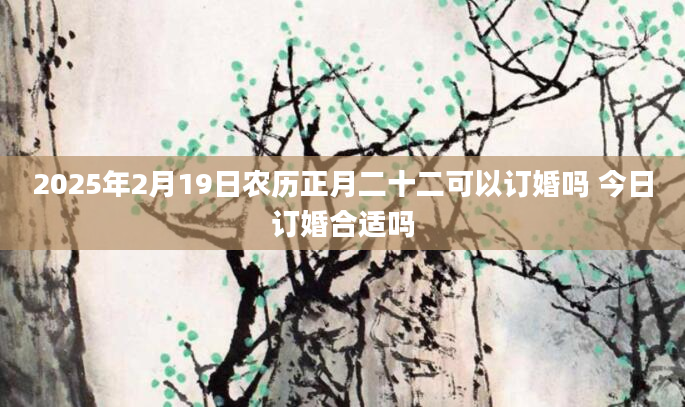 2025年2月19日农历正月二十二可以订婚吗 今日订婚合适吗订婚是结婚前的一种仪式,包括订立婚书、交换礼物、选择良辰吉日完婚等;2025年2月19日订婚日子好吗?2025年2月19日是订婚吉日吗?卦无忧为您提供订婚黄道吉...2024-12-26