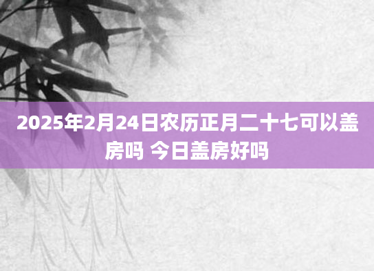 2025年2月24日农历正月二十七可以盖房吗 今日盖房好吗选择一个良辰吉日来盖房是一件重要的事情,2025年2月24日盖房好不好?盖房选什么日子好?卦无忧帮您查询适合盖房的日子。当日不适合盖房根据该日的黄历信息分析可得...2024-12-26最新文章