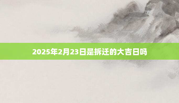 2025年2月23日是拆迁的大吉日吗当日不适合拆迁根据该日的黄历信息分析可得,2025年2月23日的黄历“忌”中有拆迁,因此2025年2月23日不适合拆迁,可能会有不好的影响,不利于拆迁的顺利进行...2024-12-26