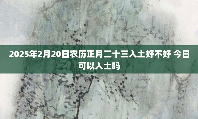 2025年2月20日农历正月二十三入土好不好 今日可以入土吗我国传统认为,人去世以后要“入土为安”,那么2025年2月20日入土日子好吗?卦无忧为您提供入土黄道吉日,欢迎查看收藏哦!当日不适合入土根据该日的黄历信息分析可...2024-12-26