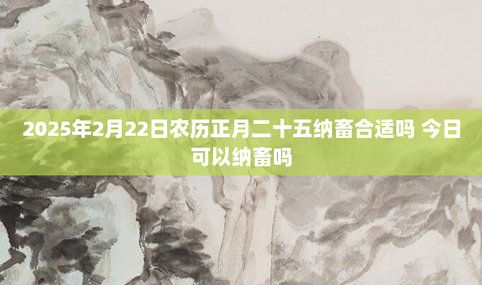 2025年2月22日农历正月二十五纳畜合适吗 今日可以纳畜吗收入或买入家畜或宠物在一定程度上影响着经济,2025年2月22日纳畜好不好?纳畜选什么日子好?卦无忧帮您查询适合纳畜的日子。当日不适合纳畜根据该日的黄历信息分析...2024-12-26