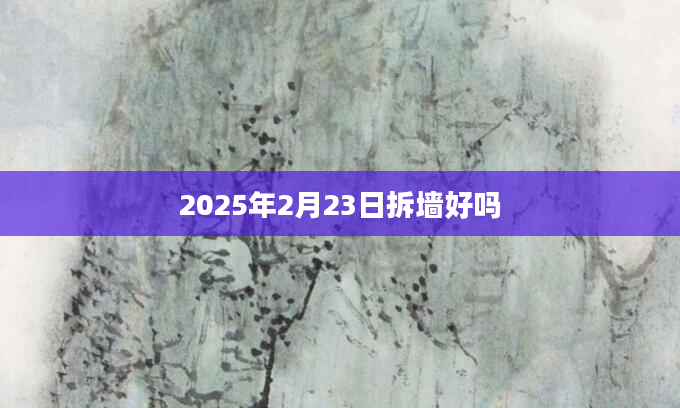 2025年2月23日拆墙好吗当日不适合拆墙根据该日的黄历信息分析可得,2025年2月23日为黑道日,就民间说法来看,黑道日不利行事,若这一日拆墙,可能会有不好的影响,但黑道日并不是完全忌讳...2024-12-26