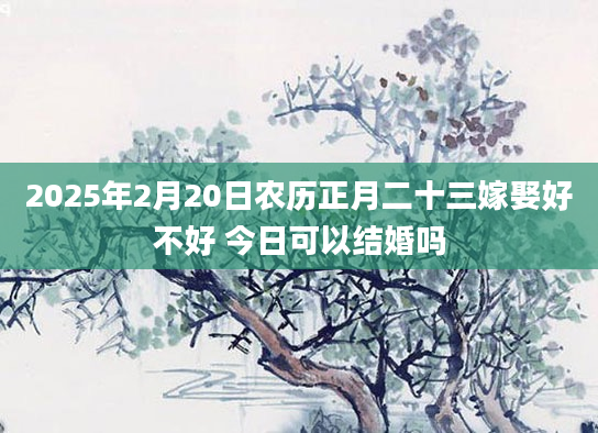 2025年2月20日农历正月二十三嫁娶好不好 今日可以结婚吗结婚是人生中最重要的事情之一,结婚吉日寄托了对美好幸福生活的向往;2025年2月20日结婚好吗?2025年2月20日结婚日子好吗?卦无忧为您提供结婚黄道吉日,欢...2024-12-26