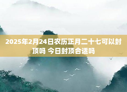 2025年2月24日农历正月二十七可以封顶吗 今日封顶合适吗封顶,其本指建筑物主体结构已经完工,也指不许超过规定的极点。2025年2月24日封顶好不好?封顶选什么日子好?卦无忧帮您查询适合封顶的日子。当日适合封顶根据该日...2024-12-26